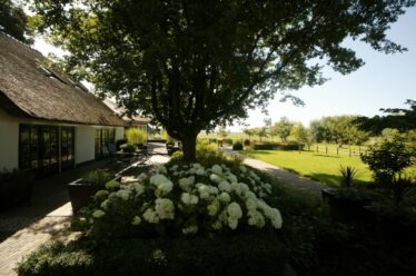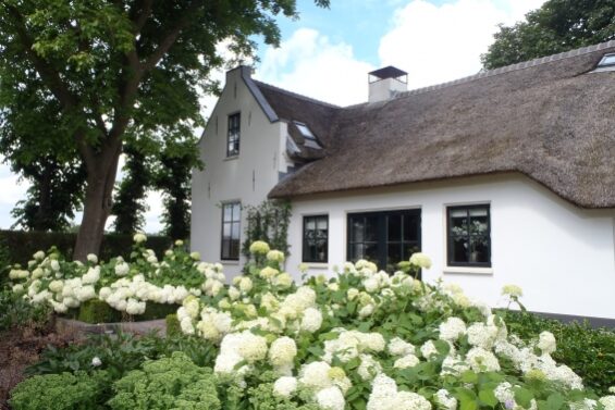 In aansluiting op de 17e eeuwse boerderij Elzerbosch is een tuin ontworpen die naadloos past in het agrarische landschap. Klinkers en grind zijn traditionele materialen die zijn toegepast bij de aanleg van de boerderijtuin. De reeds aanwezige hoogstam fruitbomen zijn gerestaureerd en aangevuld met oude rassen. De nieuwe oprijlaan wordt afgsloten met een houten hek dat onzichtbaar is geautomatiseerd. Vele typisch boeren vaste planten zijn gebruikt waaronder de stokroos en in grote houten kuipen wordt er gebruikt gemaakt van wisselbeplanting waarbij in het vroeger voorjaar diverse soorten bloembollen bloeien. Na IJsheiligen (rond half mei) worden er ieder jaar eenjarigen geplant zoals paarse petunia’s en witte geraniums.