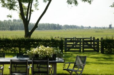 Naast de architectuur en het landschap zijn de wensen van de bewoners van groot belang. Een schommel, trampoline en een houten boomhut voorzien in de wensen van de jongste bewoners.