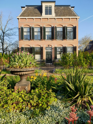 Deze voormalige pastorie heeft een overtuin aan de Vecht. Geheel in stijl met het huis uit de 19e eeuw is er in de overtuin een ovaal verhoogd bloembed aangelegd. De grote bloemenvaas wordt elk half jaar voorzien van seizoensgebonden beplanting zoals knolbegonia’s in de zomer en vele bloembolsoorten in de winter. De overtuinen langs de Vecht werden vroeger o.a. gebruikt voor overslag van goederen die aangeveoerd werden via de rivier. Van gebruikstuin naar siertuin.