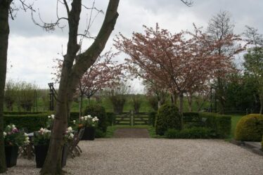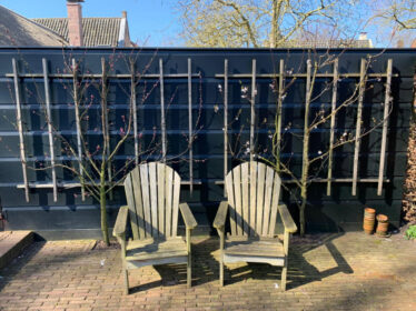 Groenpartners voert het reguliere tuinonderhoud uit. De fruitbomen in de boomgaard worden jaarlijks gesnoeid.